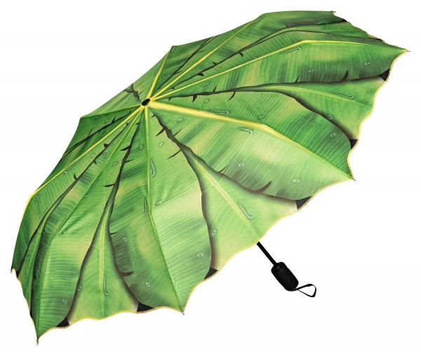 Igazi trópusi hangulatban érezheti magát az aki ezt a hangulatos banánleveleket ábrázoló esernyő alatt várja az esőt. Remek hangulata van a leveleken lefolyő esőcseppeknek.