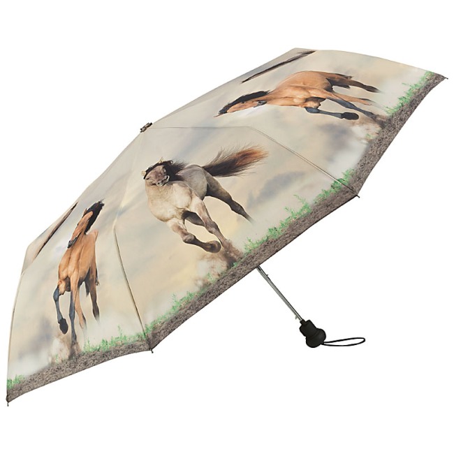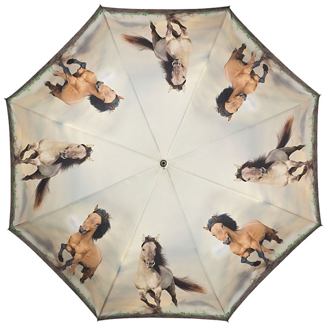 A lovak és a szabadság szerelmeseinek szól ez a nagyon izléses és dinamikus esernyő, melyen fehér és barna lovak vágtáznak.